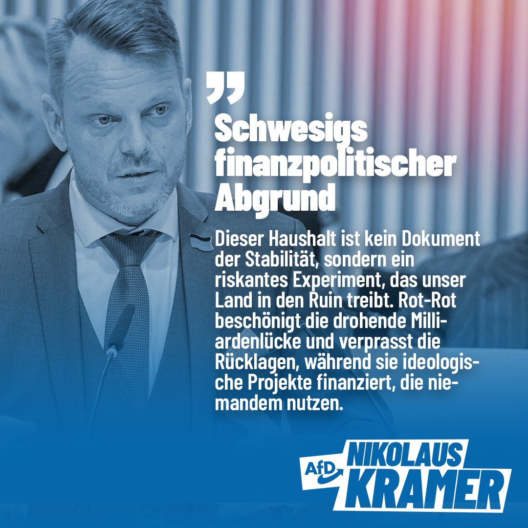 Die AfD steht für verantwortungsvolle Finanzpolitik, die dem Land dient, nicht ideologischen Wunschträumen. Wir fordern eine sofortige Kurskorrektur, bevor der finanzpolitische Abgrund uns alle verschlingt